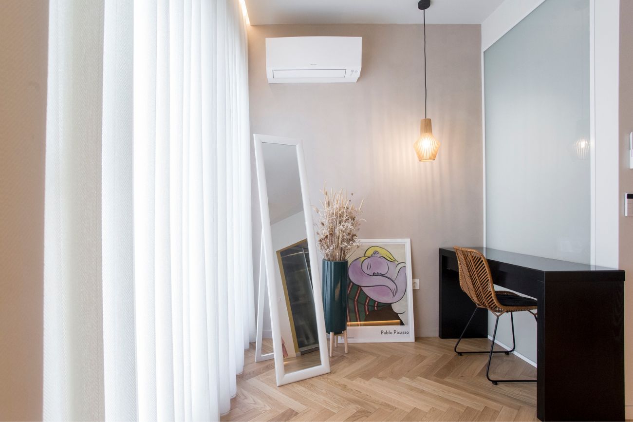 Ο χώρος προσαρμόστηκε έτσι ώστε να αναδεικνύει τη φυσική φωτεινότητα και να δημιουργεί μία αίσθηση ευρυχωρίας, χρησιμοποιώντας μοντέρνα υλικά και τεχνολογίες, εξασφαλίζοντας βέλτιστη ενεργειακή απόδοση και εύκολη διαχείριση του σπιτιού. Με την ολοκλήρωση της ανακαίνισης, το διαμέρισμα αποκτά έναν φρέσκο, σύγχρονο χαρακτήρα, ιδανικό για τις απαιτήσεις της σύγχρονης ζωής.