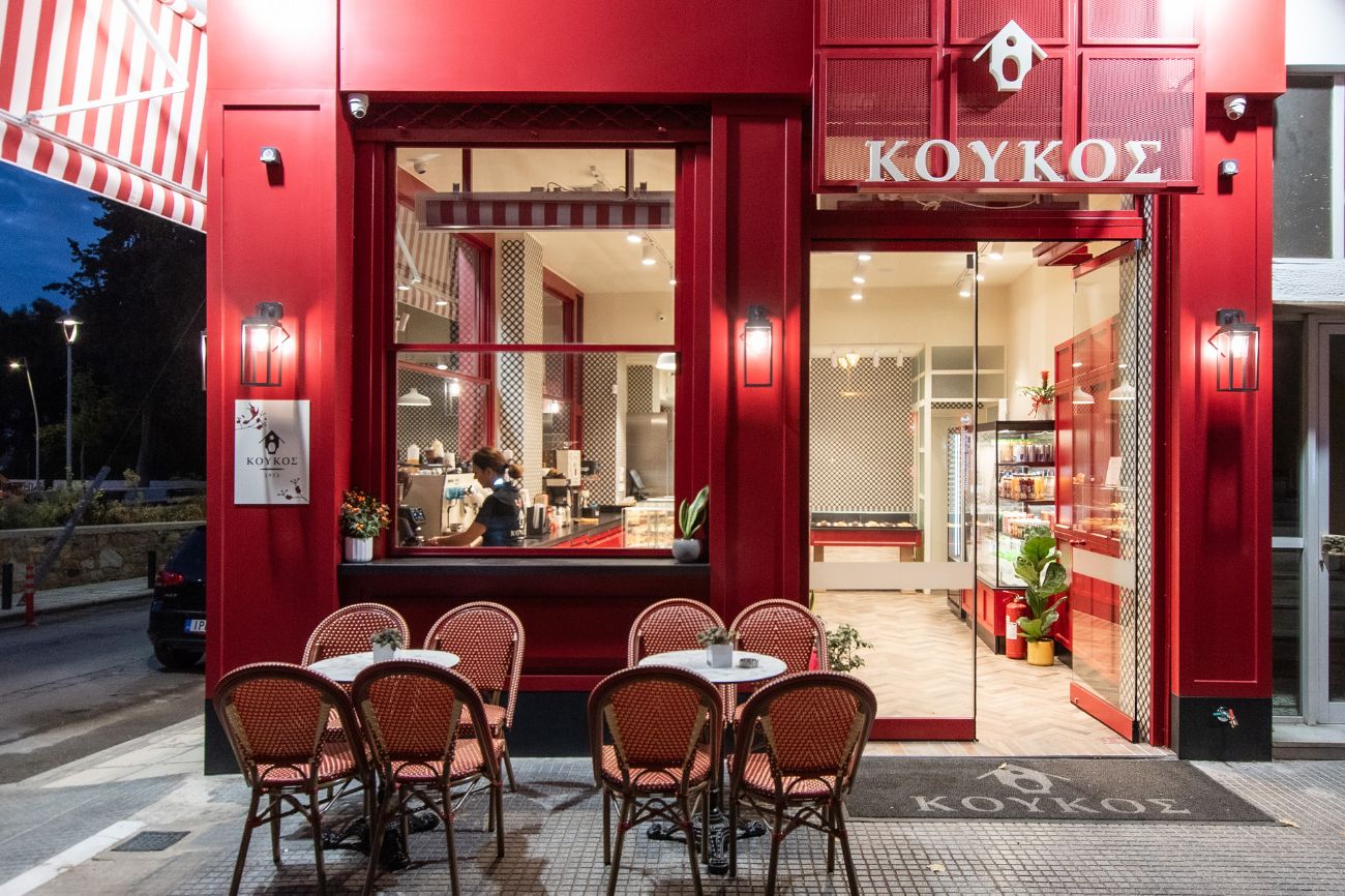 Κατασκευή του νέου καταστήματος Κούκος στη Λαμπράκη, επιφάνειας 80 τ.μ. Το έργο υλοποιήθηκε βάσει της υφιστάμενης εταιρικής ταυτότητας, με εφαρμογή της καθορισμένης χρωματικής παλέτας σε επιφάνειες, επενδύσεις και επιλεγμένα στοιχεία εξοπλισμού.